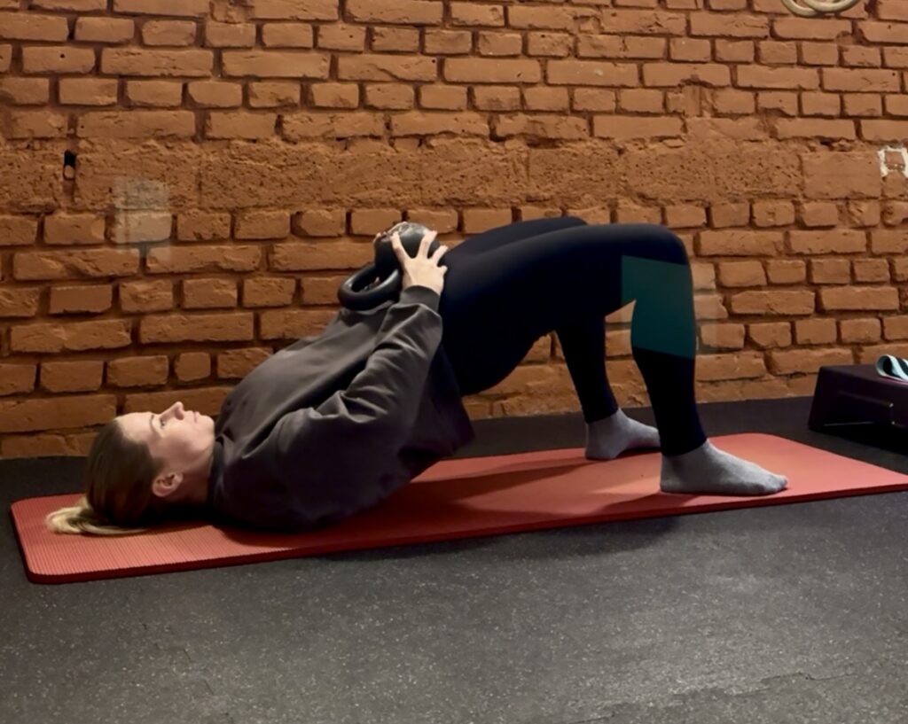 - S činkou, kettlebellem nebo jinou zátěží přes pánev (zdvih oproti odporu závaží).
