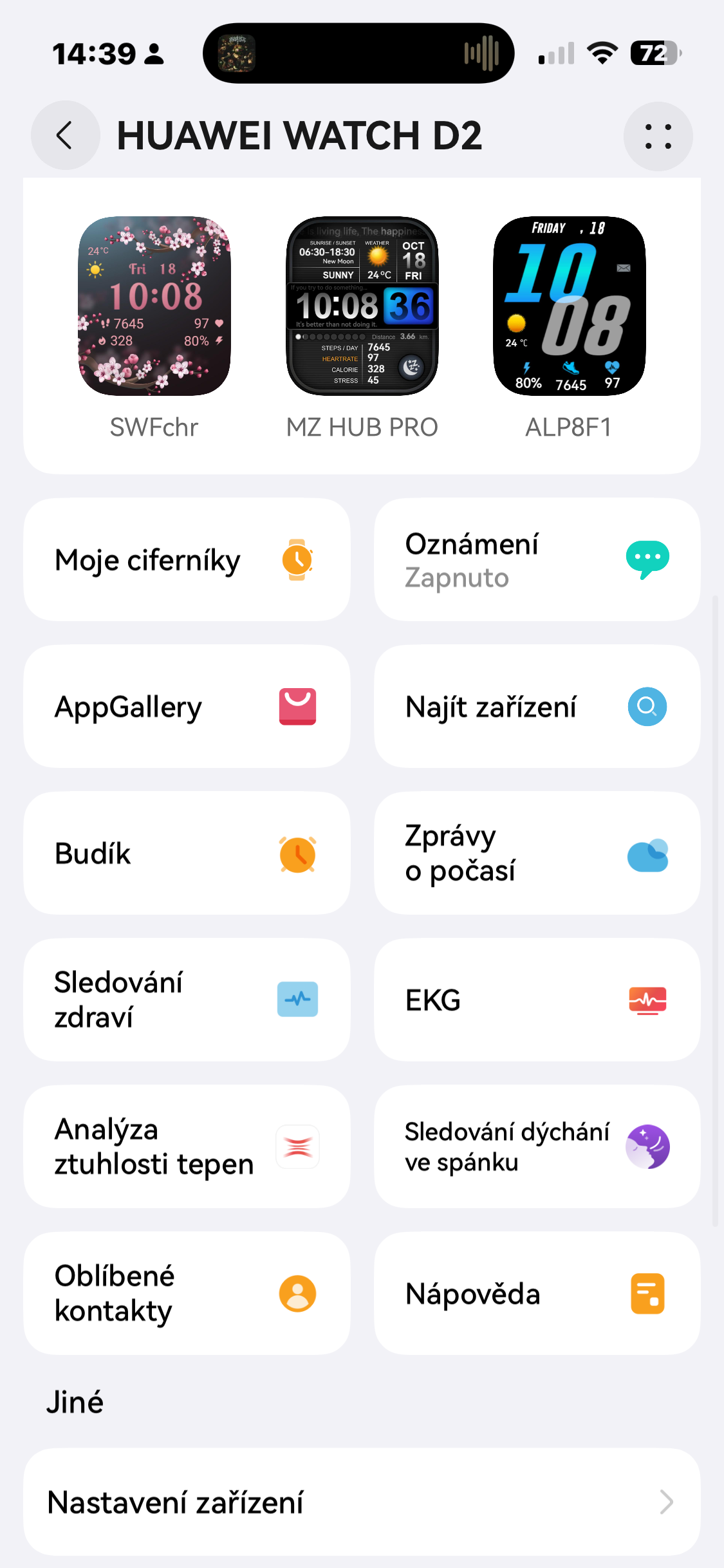 - opravdu povedená, přehledná aplikace Huawei zdraví